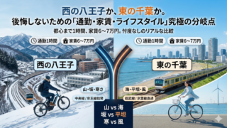 「都心まで1時間、家賃は6〜7万円。さて、西の八王子か、東の千葉か。」この二択を迫られたとき、多くの人は路線図と家賃相場だけで判断しようとします。しかし、実際に生活を始めてから突きつけられるのは、スペック表には載らない「生存環境」の圧倒的な...