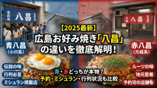 広島 【2025最新】広島お好み焼き「八昌」の違いを徹底解明!青・赤どっちが本物?薬研堀の行列状況や予約・ミシュラン店を比較