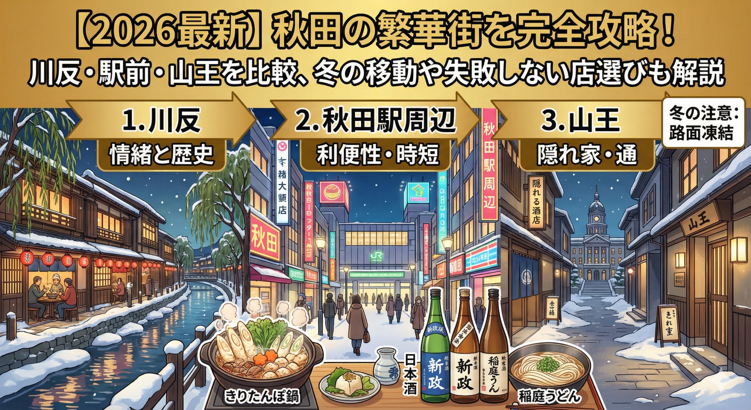 秋田の繁華街を賢く、安全に、そして深く楽しむために、これだけは押さえておきたい「4つのポイント」をまとめました。