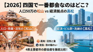 四国 【2026】四国で一番都会なのはどこ?人口50万人の「松山」と経済拠点の「高松」。4県主要都市の都会度を数値で徹底比較
