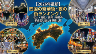 「四国で一番栄えている街はどこだろう?」旅行や出張、あるいは地方移住を検討する際、その土地の利便性や「都会度」は非常に気になるポイントですよね。四国と聞くと豊かな自然をイメージしがちですが、実は主要都市の中心部は、本州の都市に引けを取らない...