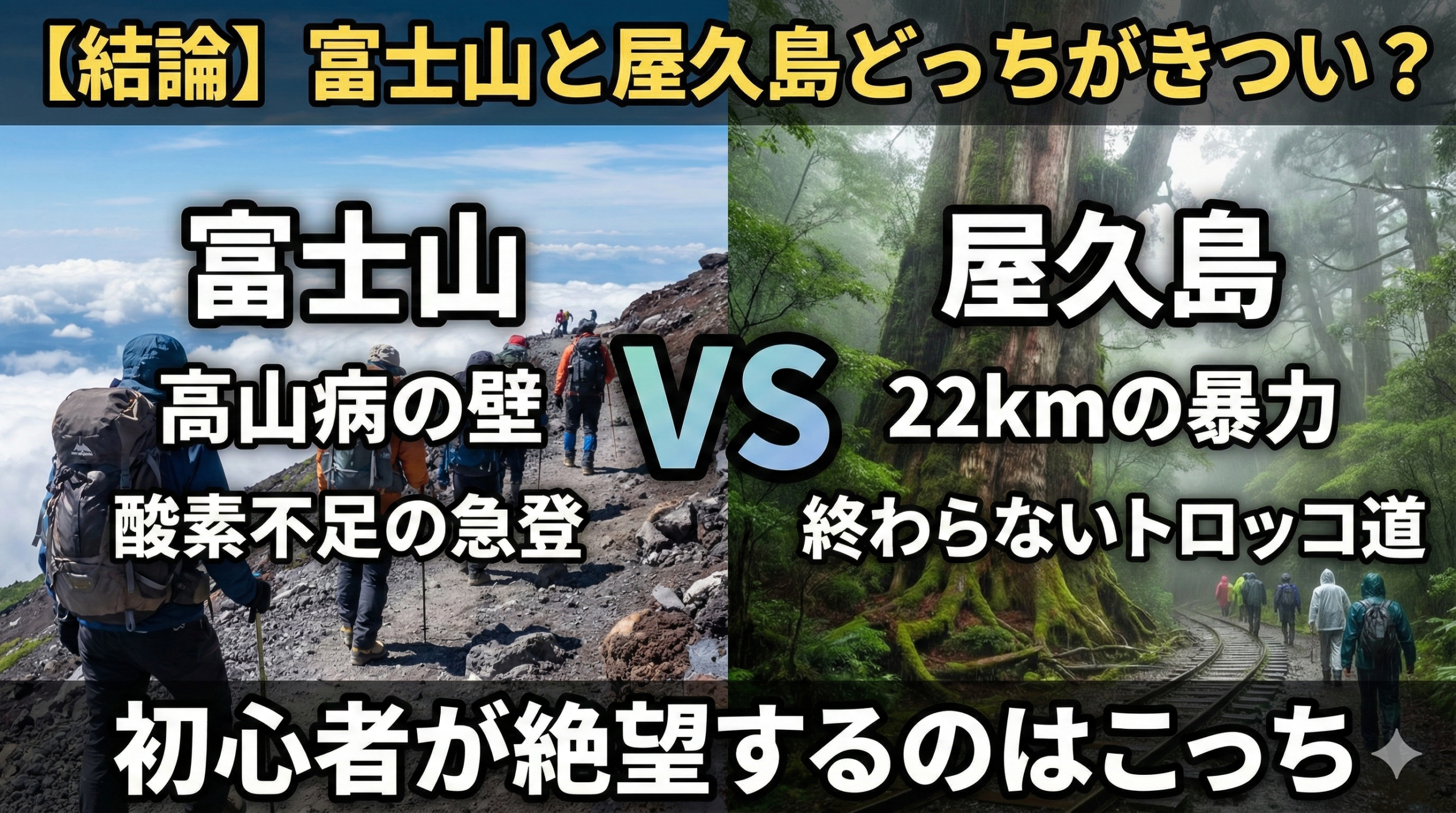 しかし、単純に「富士山の方が大変」と言い切れない部分もあります。なぜなら、屋久島には「距離の暴力」があるからです。両者の違いをわかりやすく比較表にまとめました。