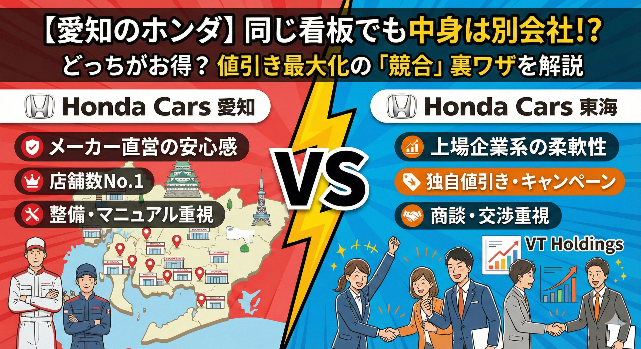 「ホンダカーズ愛知」と「ホンダカーズ東海」はライバル関係にあります。