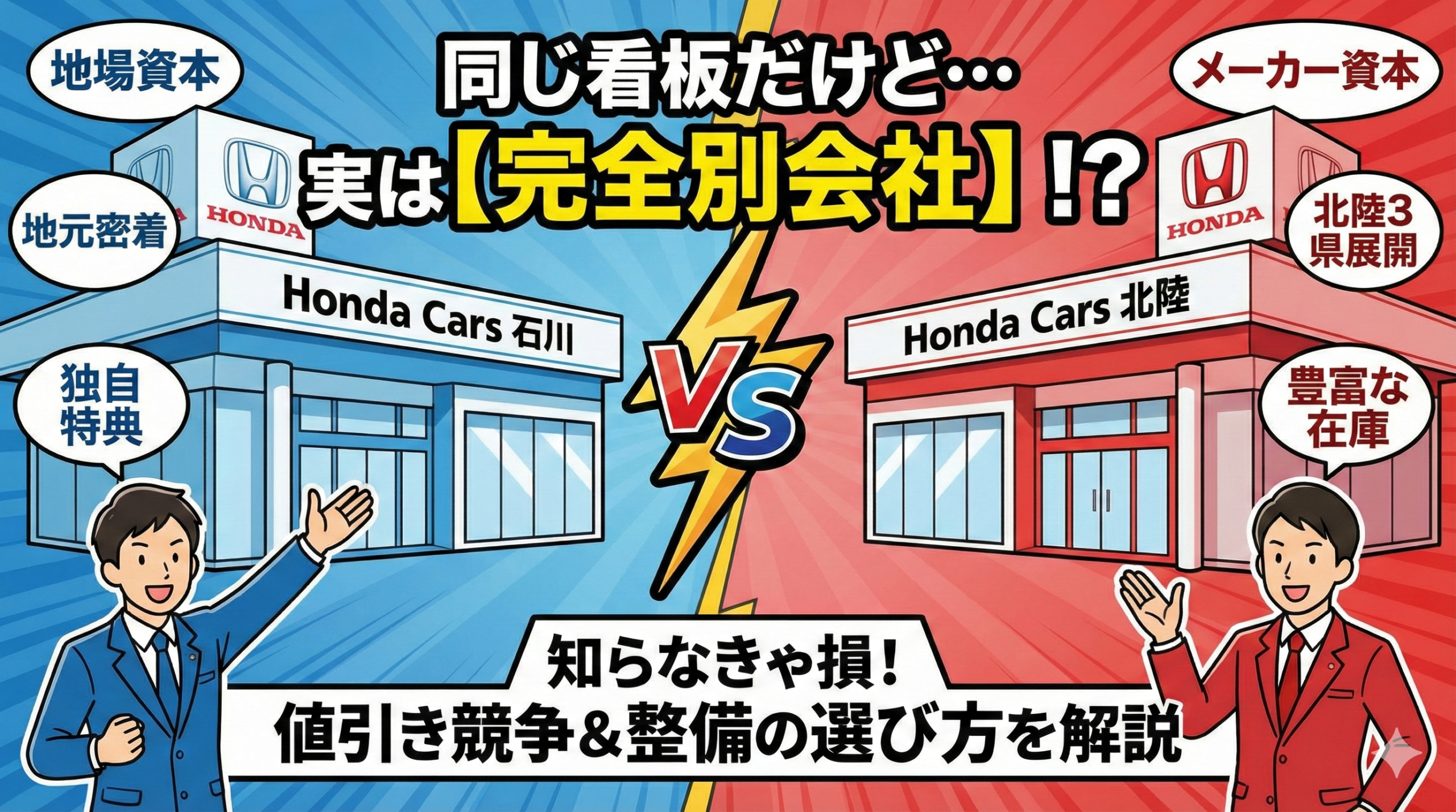 石川県内でホンダ車の購入を検討している方や、整備工場を探している方にとって、「ホンダカーズ石川」と「ホンダカーズ北陸」の違いは非常に分かりにくいものです。
