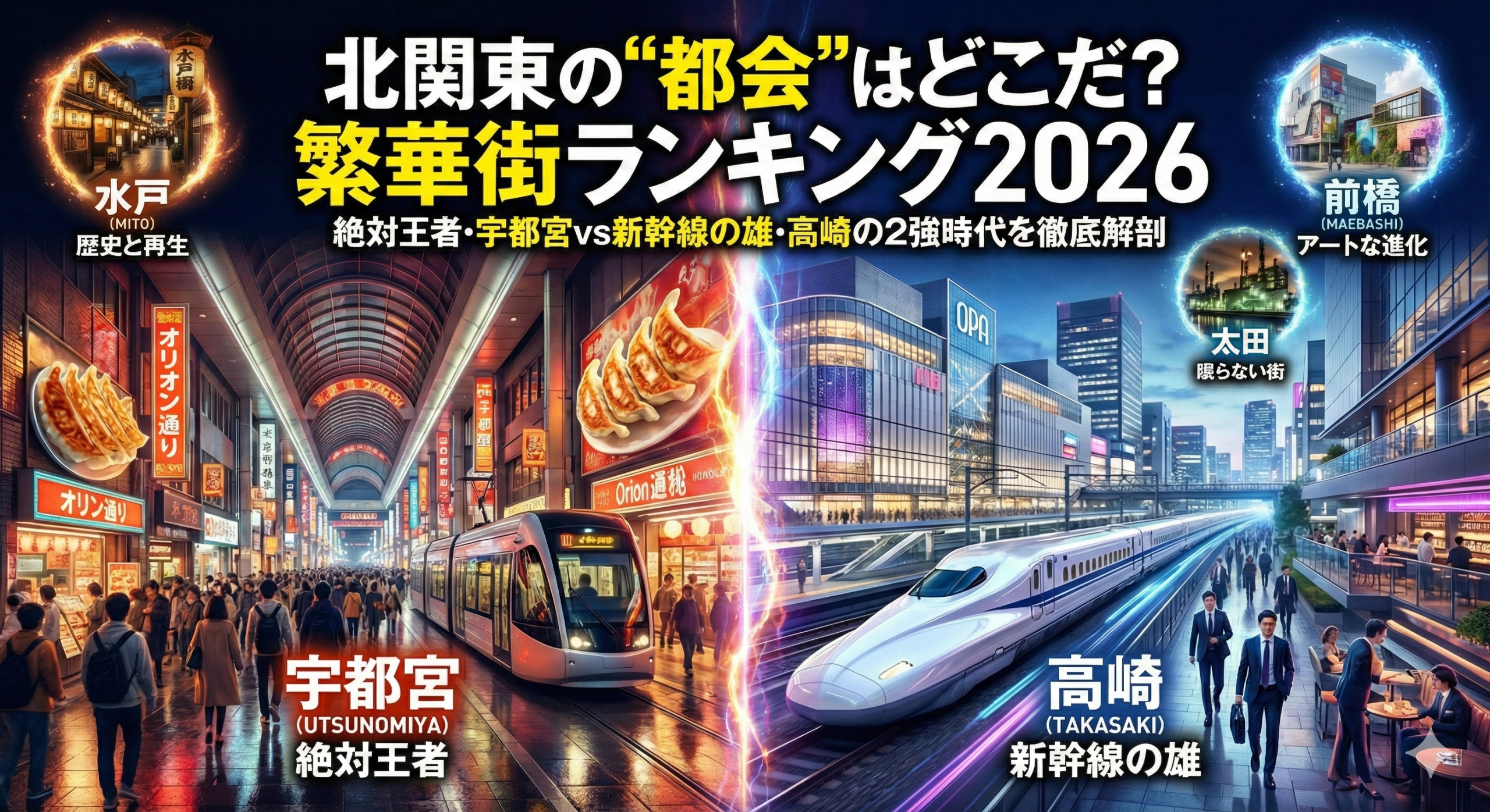 2026年現在、北関東の繁華街は、新幹線停車駅を中心とした大規模再開発や、昭和レトロな街並みのリノベーションにより、かつてない変化を遂げています。圧倒的な人口規模を誇る「宇都宮」、交通の要所として洗練された「高崎」、そして歴史と革新が混ざり合う「水戸」。