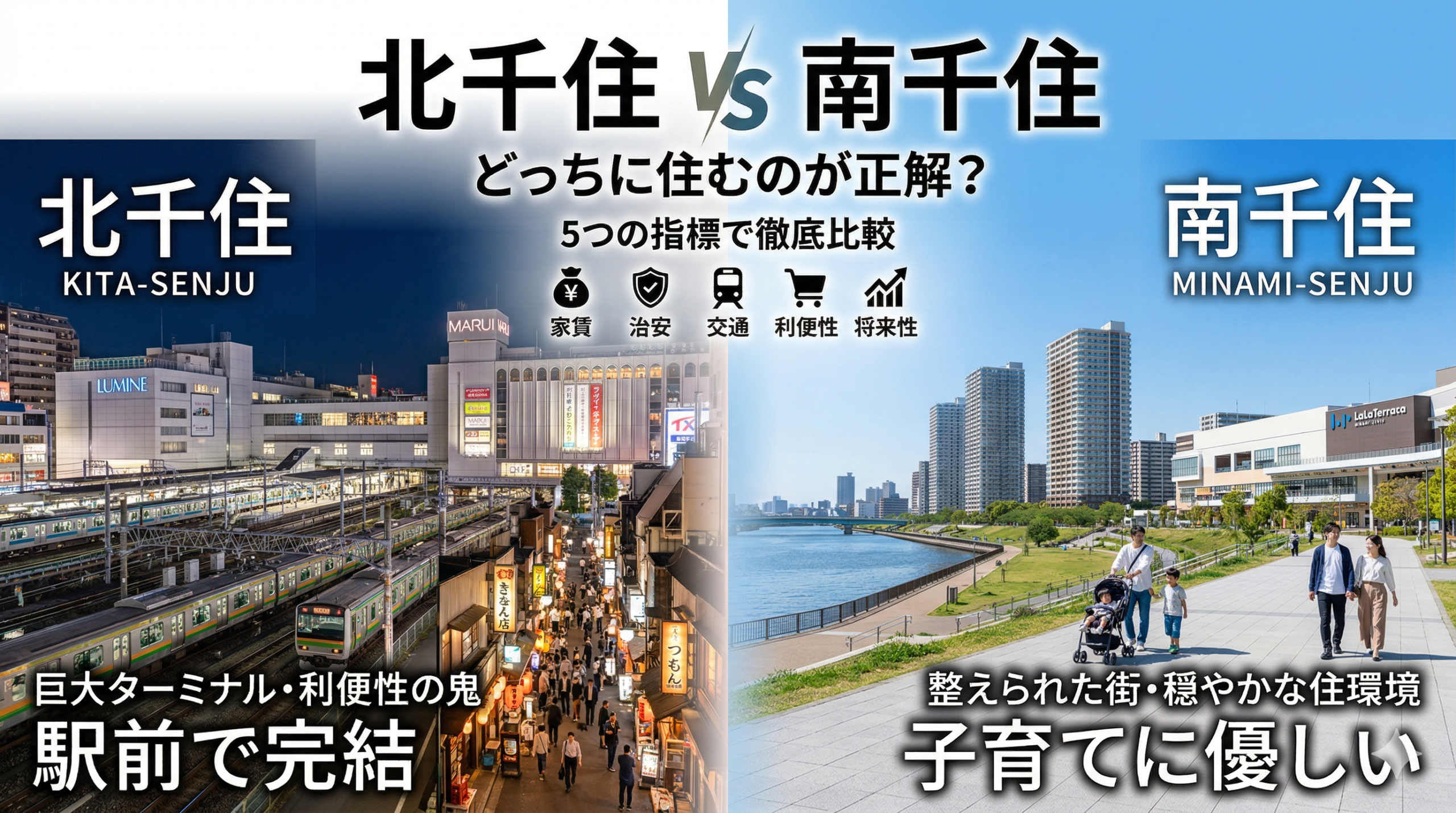 そんな迷いを抱えるあなたのために、本記事では家賃相場、治安、交通、生活利便性、そして街の将来性という5つの切り口で両駅を徹底解剖します。