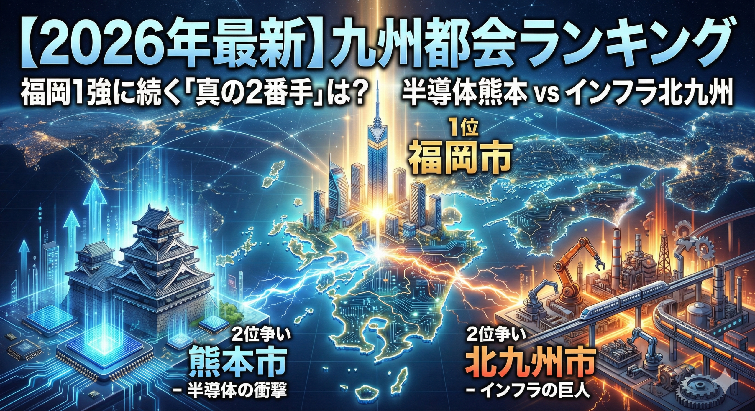 2026年現在、九州の都市間格差は「福岡1強」がさらに加速する一方で、2位争いでは熊本市が北九州市を指標面で猛追、あるいは一部逆転するという、歴史的な転換点を迎えています。