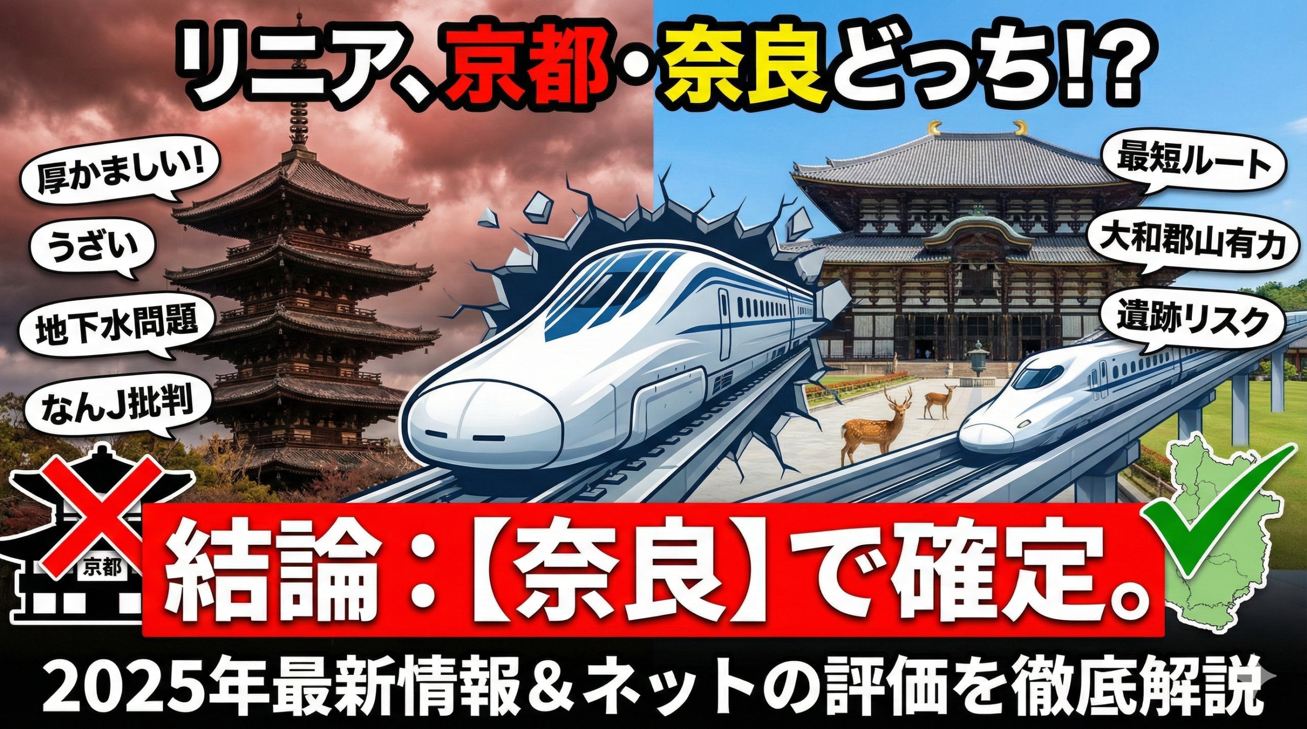 リニア中央新幹線の「京都か、奈良か」というルート争いは、単なる交通網の議論を超えて、SNSやネット掲示板(なんJ等)でも非常に高い関心を集めるトピックです。