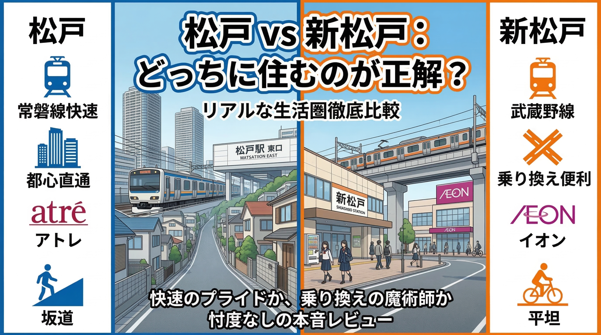 松戸と新松戸、どちらを選ぶかは、あなたが人生のプライオリティを「オン(仕事・効率)」に置くか、「オフ(休日・ゆとり)」に置くかで決まります。