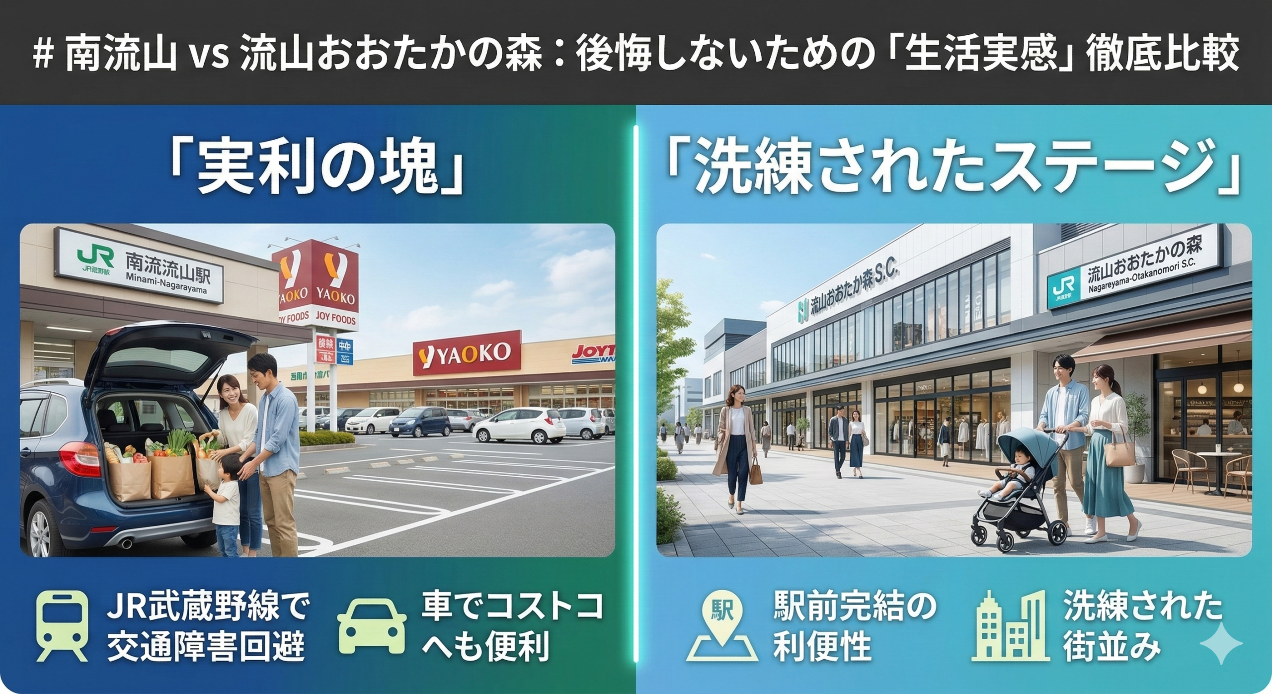 本記事では、カタログスペックの比較表には絶対に載らない、駅前のビル風の強さから、週末のスーパーのレジ待ち時間、そして「結局、三郷のコストコに行くならどっちが便利か」といった泥臭い生活実感まで、忖度なしで徹底比較します。