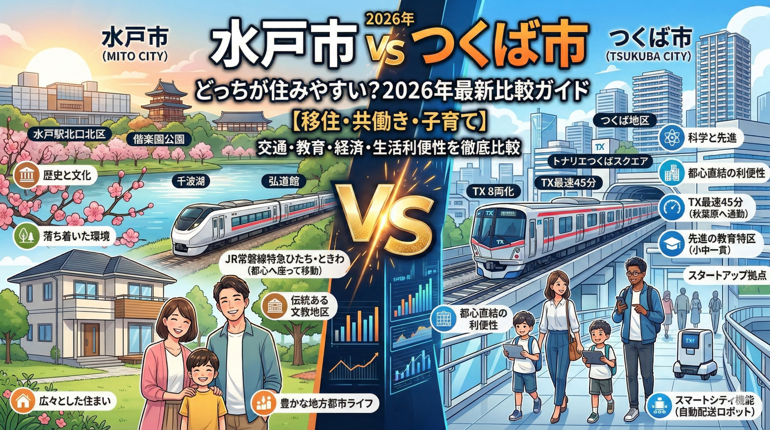 茨城県内での住み替えや、首都圏からの移住を検討する際、必ずと言っていいほど比較されるのがこの2都市です。しかし、2026年現在の両市は、かつてのイメージとは大きく変わりつつあります。