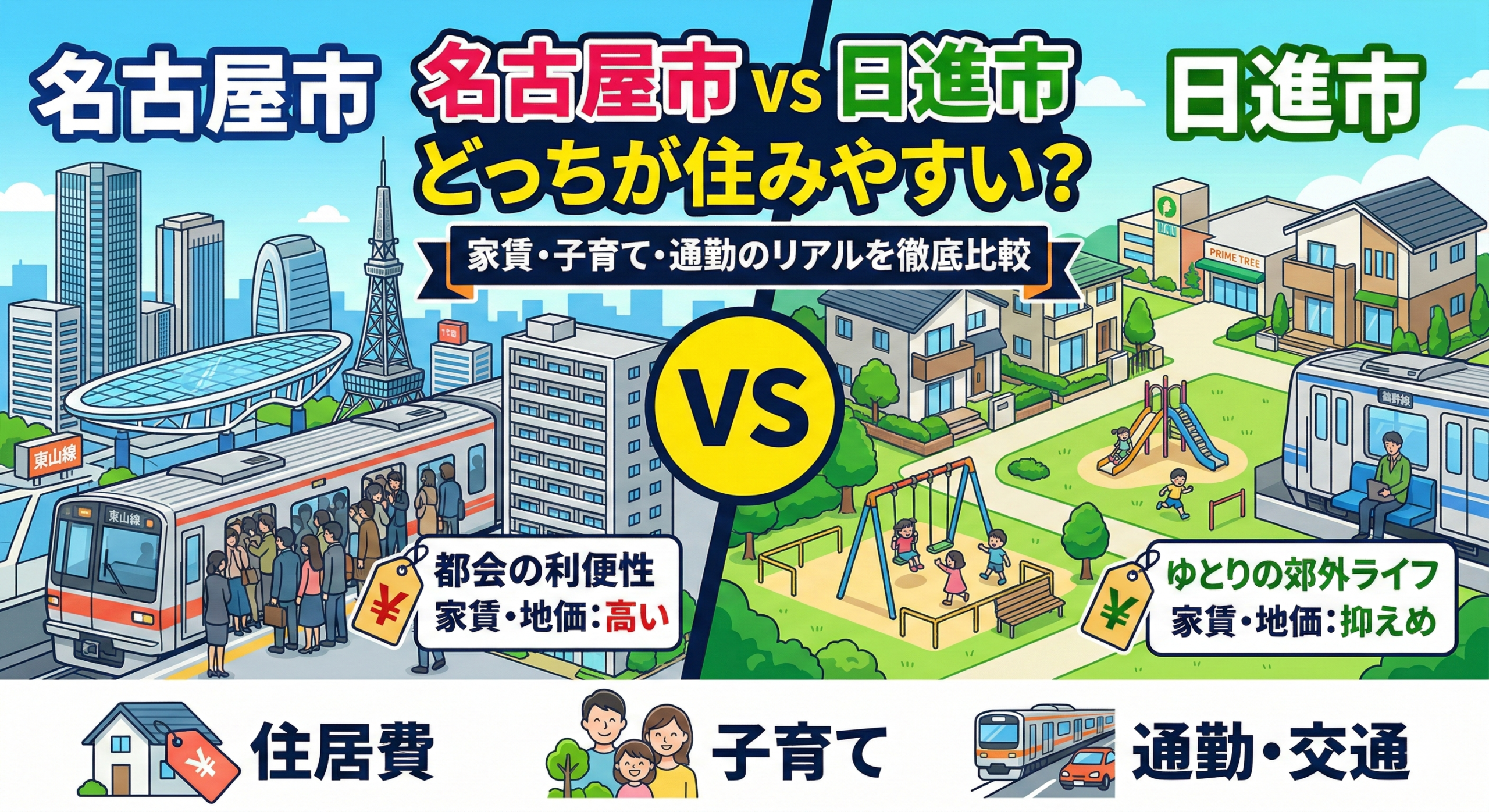 名古屋市と日進市。隣接する2つの街ですが、比較してみると「何を優先して暮らしたいか」によって、選ぶべき答えははっきりと分かれます。