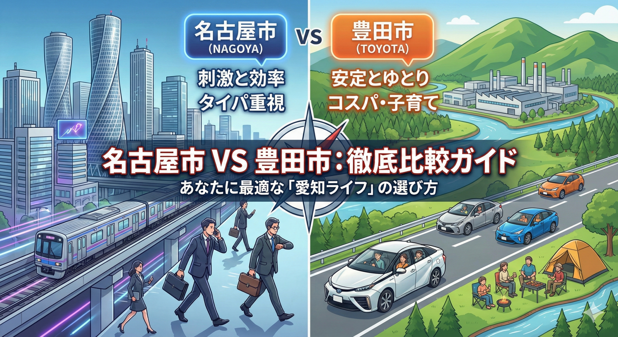 名古屋市と豊田市。どちらが良い・悪いではなく、「あなたがどんな24時間を過ごしたいか」で正解は決まります。