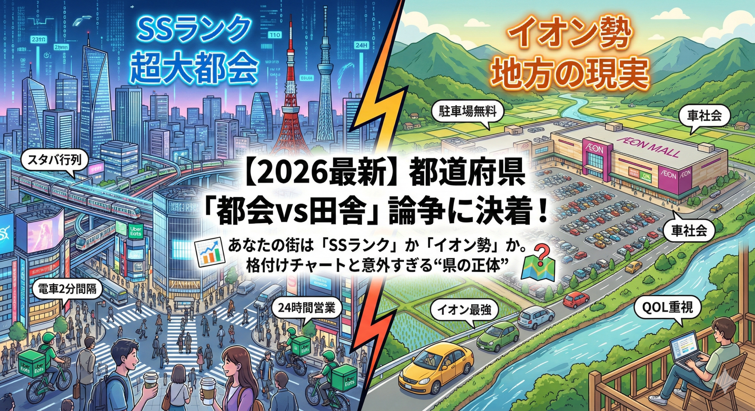 本記事では、最新の統計データはもちろん、「電車の本数」や「深夜のデリバリー可否」といった地元民の生々しい実感、さらにはSNS上の定説をミックスして、47都道府県の『本当の立ち位置』を徹底解剖します。読めば、あなたの出身県に対するイメージがガラリと変わるかもしれません。