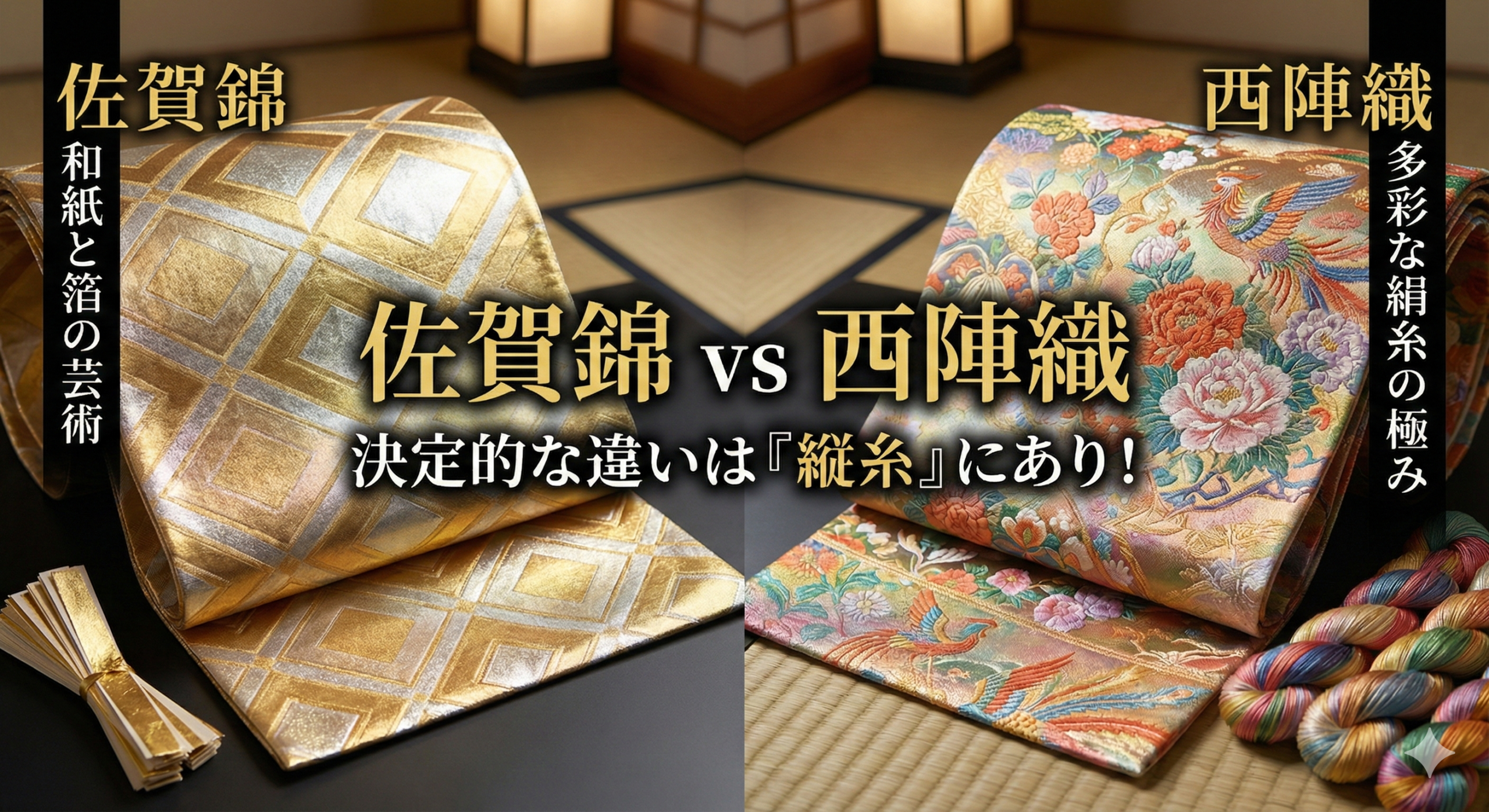 佐賀錦は「箔の重厚な輝き」、西陣織は「糸の緻密な色彩」。