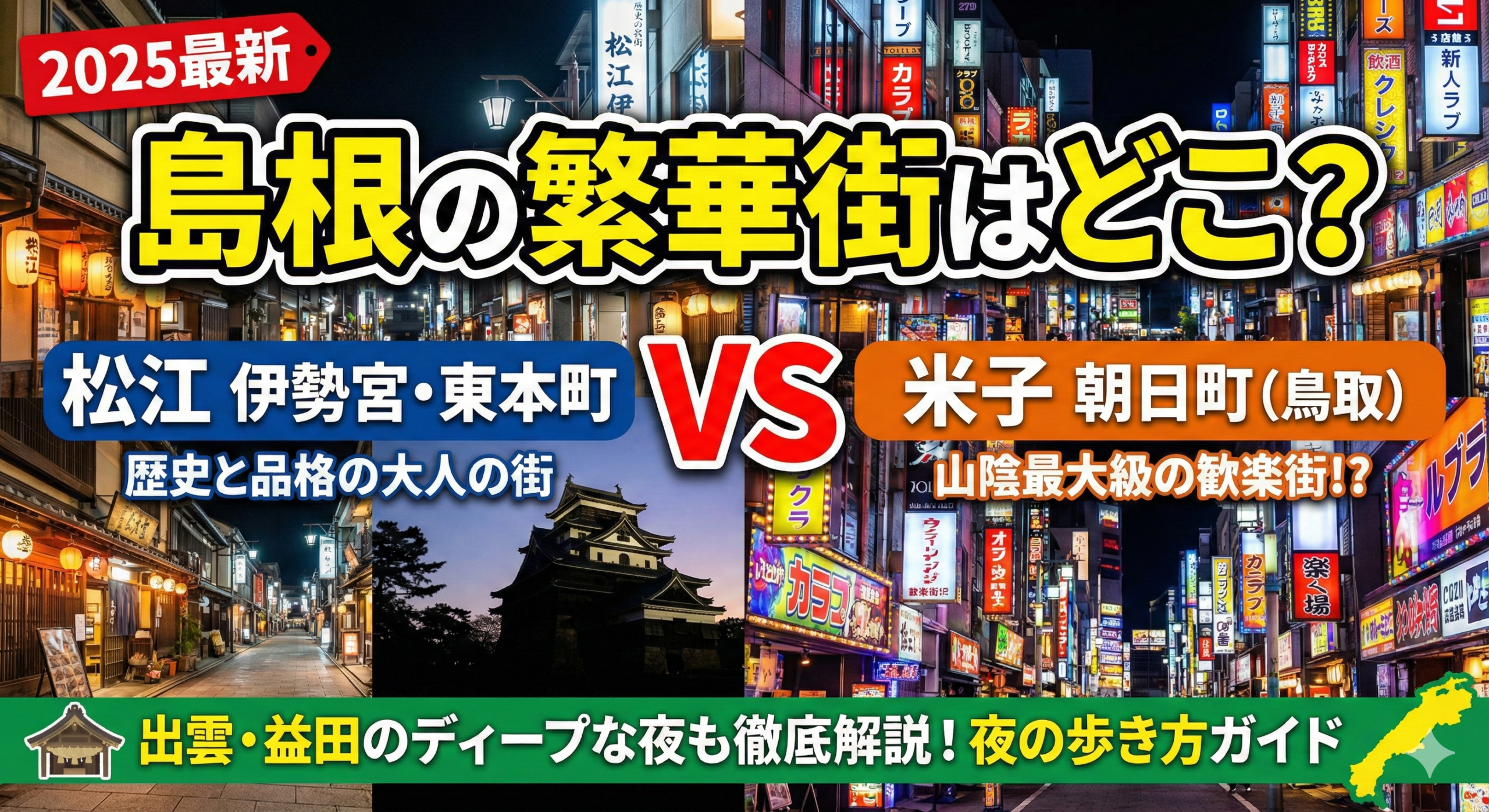 今回は、2025年現在の最新情報をもとに、島根の繁華街事情をライバルである鳥取(米子)と比較しながら徹底解説します。