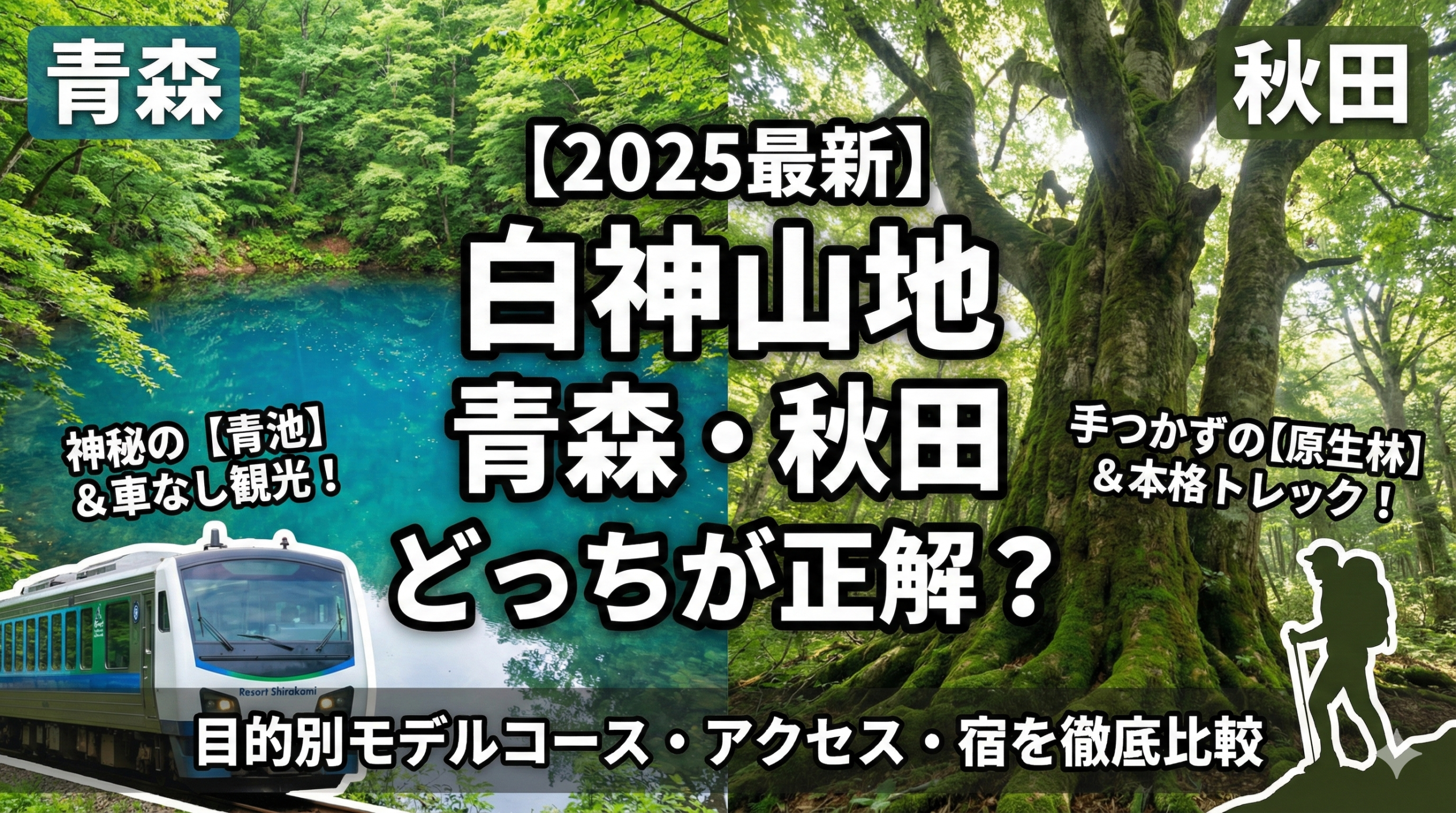 【2025最新】白神山地は青森・秋田どっちが正解?青池か原生林か。目的別モデルコース・車なしアクセス・宿選びを徹底比較