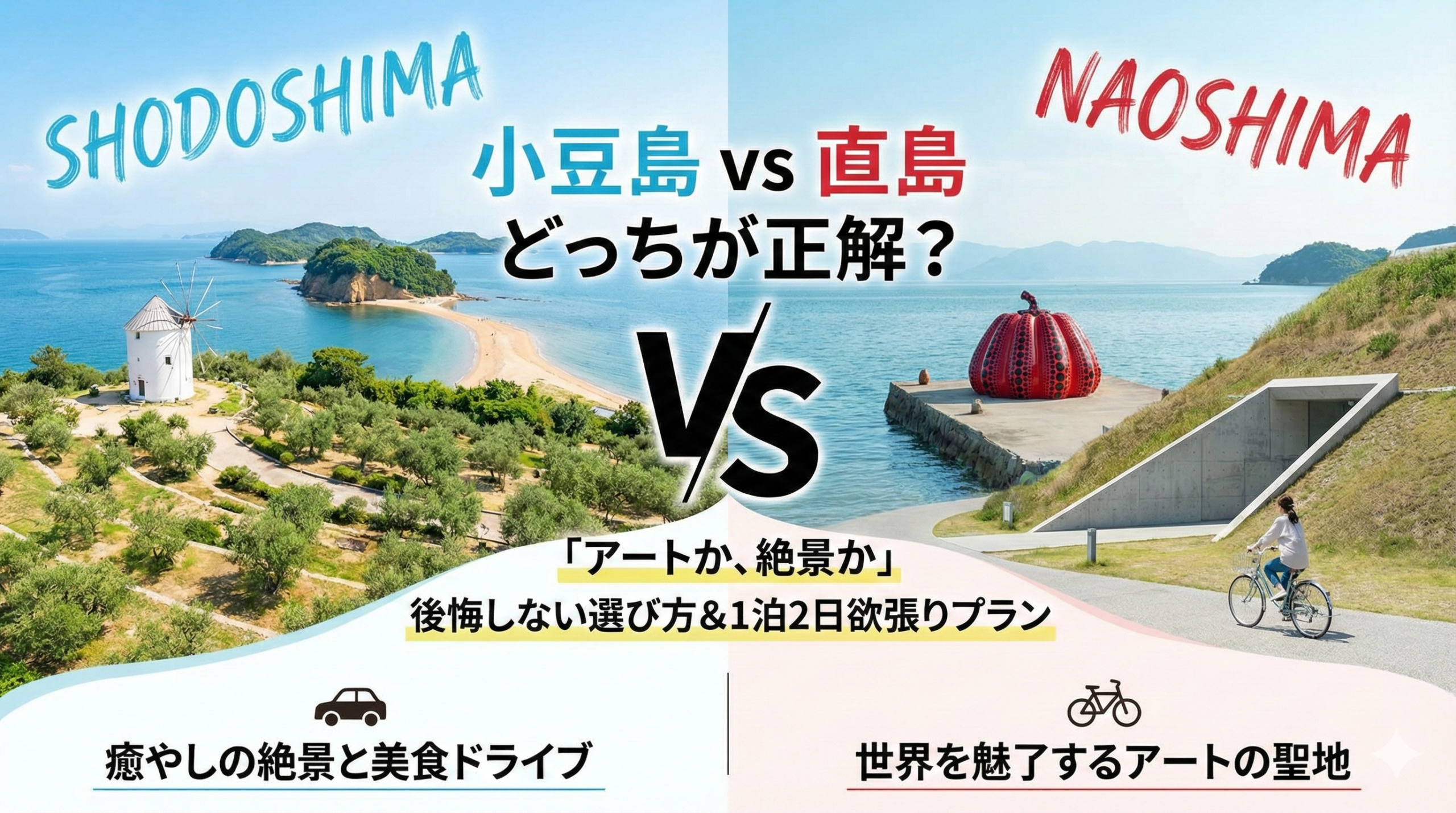 この記事では、初めての瀬戸内旅行でも失敗しないための「徹底比較チェックリスト」から、車なしでの移動のコツ、さらには「どうしても両方行きたい!」という欲張りさんのための1泊2日プランまで詳しく解説します。